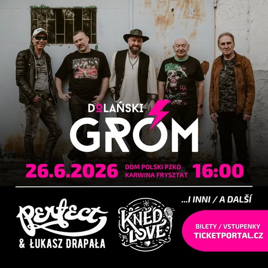 Tradycyjny karwiński festiwal rockowy odbędzie się już po raz piętnasty! Tym razem zapraszamy do Domu Polskiego PZKO w Karwinie - Frysztacie w piątek, 26 czerwca 2026 roku. Zaczynamy o godzinie 16:00. Na scenie wystąpi legendarna grupa Perfect z charyzmatycznym Łukaszem Drapałą, energetyczny zespół Knedlove oraz inni!