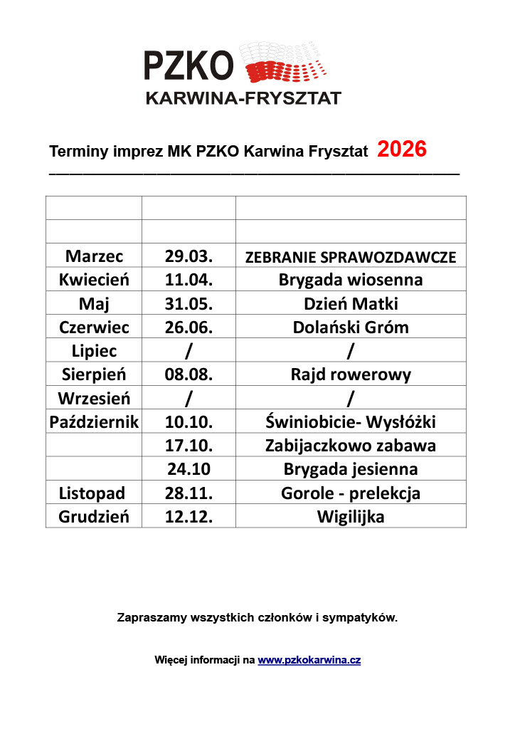 Kalendarz wydarzeń 2026